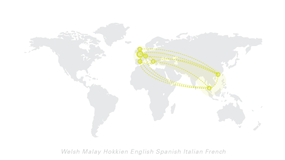 The performance part of the project consists of seven monologues done by seven individuals who are more or less foreign to UK and speak more than two languages, each focusing on one of the emotion categories that I have managed to identify through discussion, workshops, and scientific research references. I chose a second generation Ghana immigrant in London, an Icelandic who has been living in Portugal and works in London, an Iranian who knows the Urdu language which was originally created through a mixture of Persian and Hindi, a Singaporean who grew up using English, Mandarin, Hokkien, and Malay in daily life and is fascinated by Welsh, a Taiwanese whose parents are from France and Taiwan, a Lithuanian who knows Russian because it was a part of USSR, and a Romanian who is doing linguistic research in Computer Science. All of the individuals represent a story that's linked by different languages.